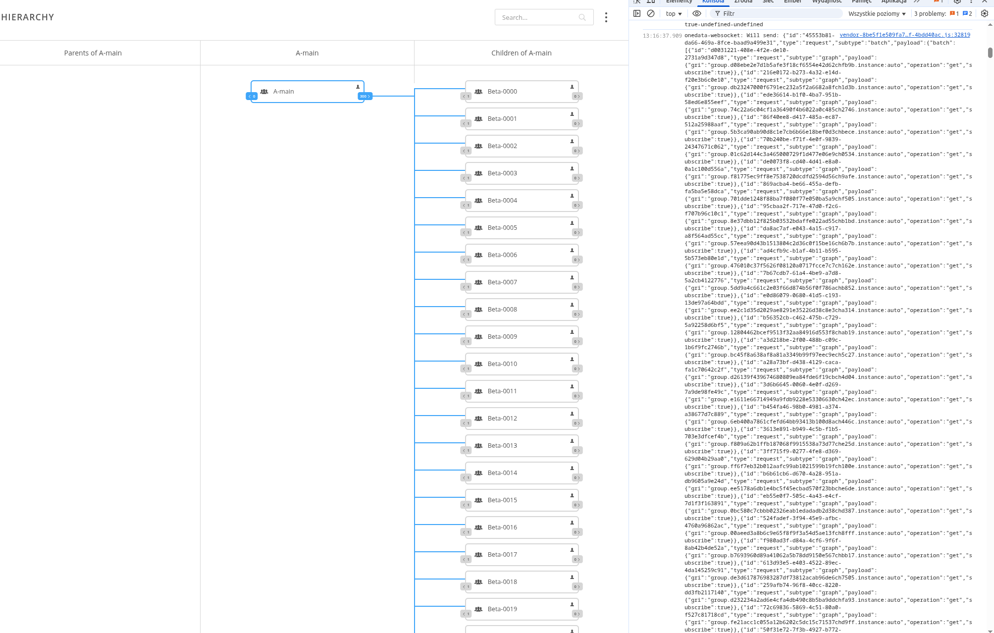 - pobierać rekordy list childrenów i parentów za pomocą batcha (chyba, że uznamy inaczej, bo będzie ciężko czekać na wszystko na raz - ale teraz widok działa przez to barzdo wolno, bo często się aktualizuje) - to jest sytuacja, kiedy mamy dużo grup w kolumnie (np. 300 childrenów) i dla każdej ewaluujemy listę children i parents, żeby pokazać ilość tych childrenów i parentów